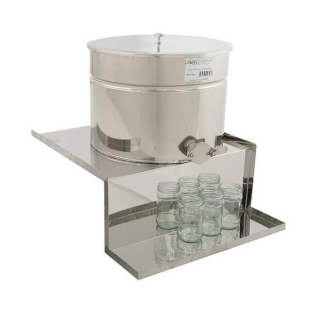 Add this to your honey bottling table to hold jars while filling. The stainless steel unit sits under your bottling tank and provides an overhanging shelf for bottling.