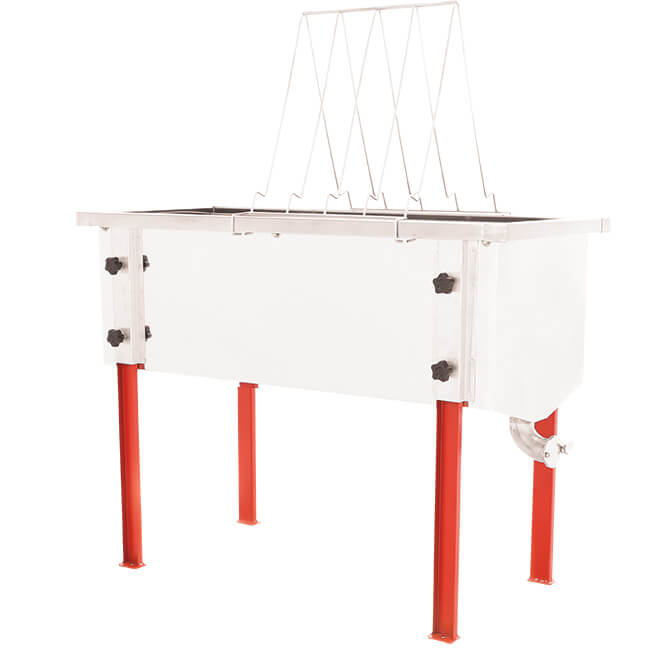 This reinforced stainless steel uncapping tank is a perfect addition to your honey extraction workflow. A flexible and accommodating capacity allows 30 frames while using the included support stand (holds frames while removing wax cappings), and up to 40 frames without the support. Get a jump on straining wax cappings with the removable basket which holds cappings off the bottom of the tank, allowing them to drain.