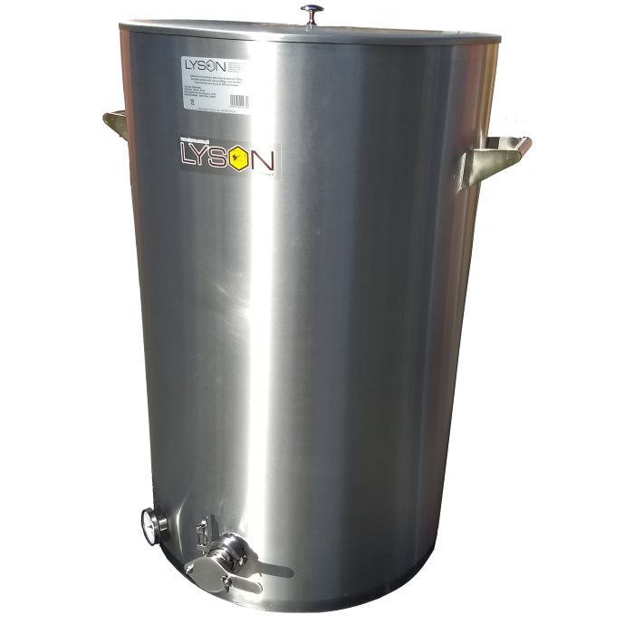 The Lyson 36 gallon (440 pounds or 200 kg) water-jacketed honey bottling tank can be used to decrystalize and bottle your crop. The water jacket is heated by a 230 volt 2000 watt replaceable heating element, and is thermostatically controlled by a simple analog temperature knob. The outlet of this tank features a sanitary coupling which can be easily coupled to a honey gate (included), or a variety of other accessories such as a bottling valve, ball valve, barbed fitting, etc. Includes water temperature thermometer and stainless steel cover.
