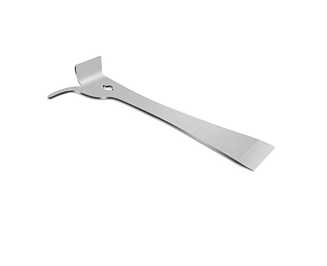 One end is a scraper for easily removing excess wax or propolis, and the other end is a J hook for prying frames from the hive box.